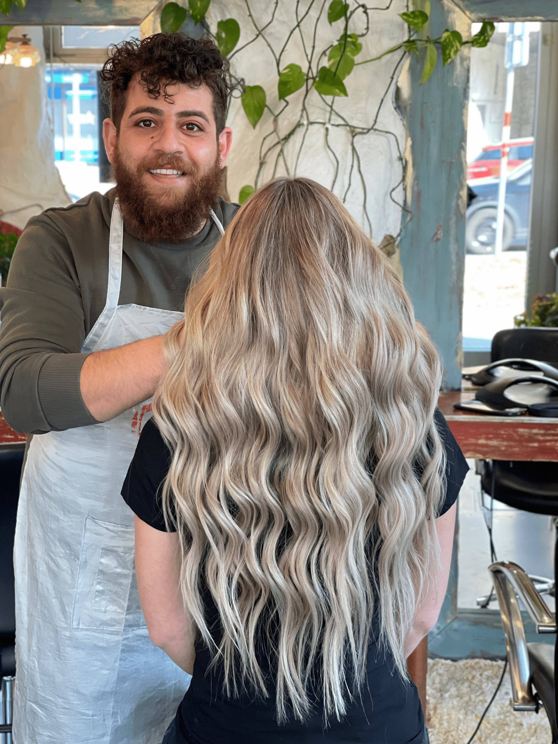 Mit viel Sorgfalt tragen wir die Farbe gleichmäßig auf, um ein perfektes und natürliches Ergebnis zu erzielen. Dabei achten wir stets auf die Gesundheit deiner Haare.